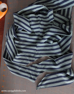 *Note* I personally don’t mind having seams in my yarn. If this bothers you, don’t use the sleeves, or you could try cutting them in vertical strips instead. I also don’t hold too firmly to what kind of fabric the shirt is. As you can see, the shirt in the pictures is a waffle-knit material, and I also have some really old sweatshirts in my pile to cut up. My theory is, if it’s soft and stretchy, it’ll do just fine.