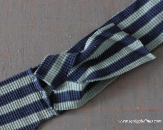 Pull the end of strip #2 through the slit of strip #1, just a couple of inches.