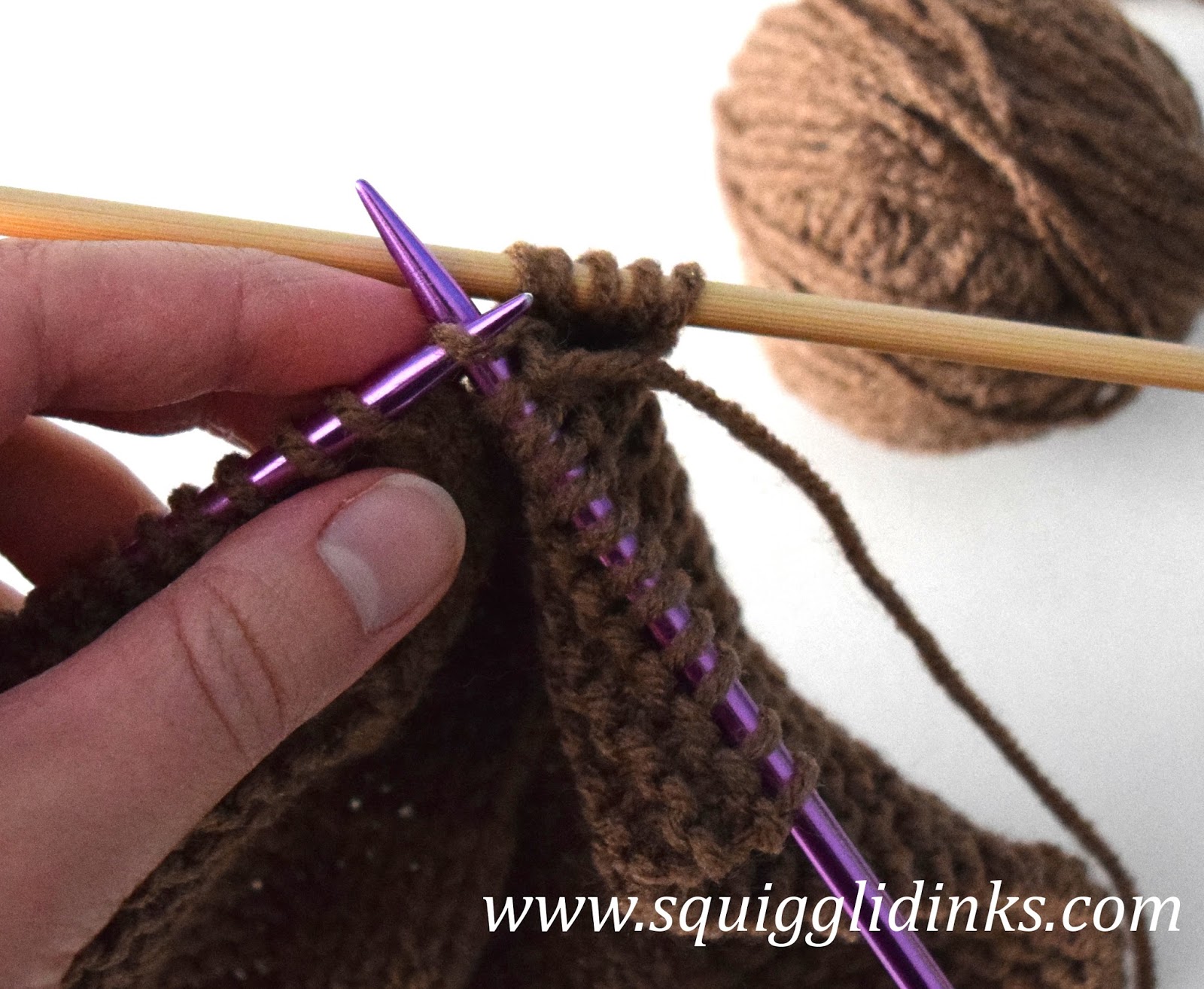 Repeat these two rows until block measures 2.5-3 inches* from cast on edge.