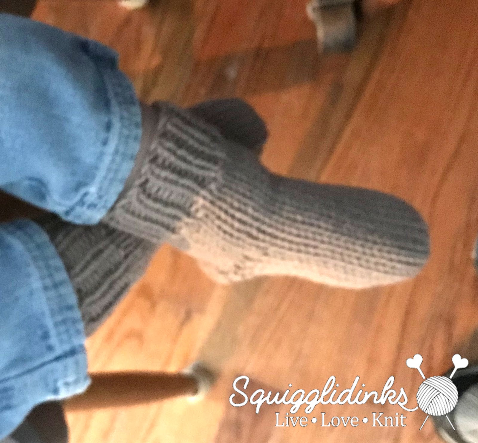 Munchkin is too squirmy to get a clear modeled photo, but the socks have been a success. He hasn’t been stepping out of his shoes, and in these colder temperatures, his little feet have been much warmer.